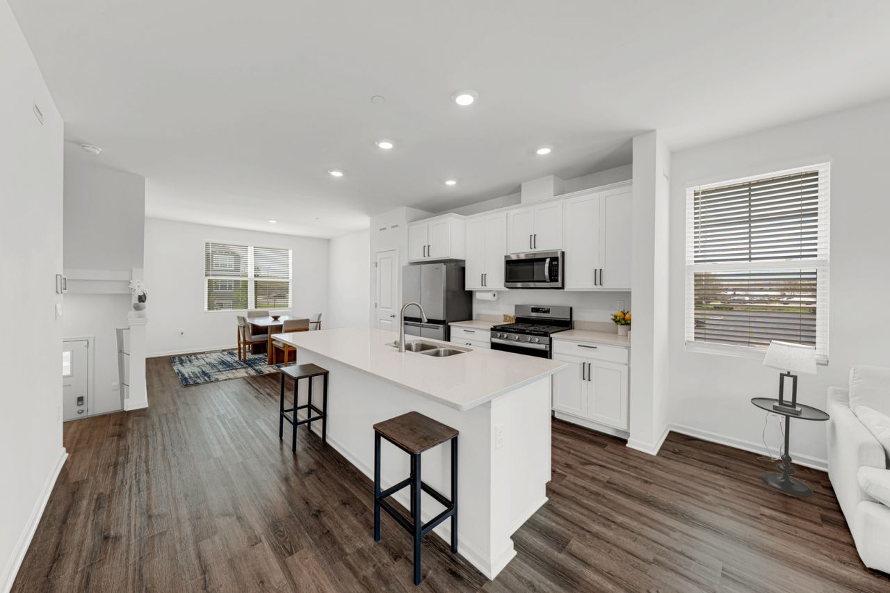 Better Than New End-Unit Townhome in Stevenson High School District! Welcome to this stunning Garfield model offering 3 bedrooms, 2.5 baths, and a 2-car garage, perfectly situated in a premium location. This bright and airy home features an open-concept layout with 9-foot ceilings, luxury vinyl plank flooring, and abundant natural light throughout. The beautifully designed kitchen is the heart of the home, showcasing a large center island, 42 white soft-close cabinetry with sleek black hardware, stainless steel appliances, quartz countertops, and a garbage disposal. The seamless flow into the dining and living areas makes it perfect for both everyday living and entertaining. Step out onto the extended wooden deck right off the great room-ideal for relaxing or hosting guests. Upstairs, you'll find a convenient laundry area and a spacious primary suite complete with a walk-in closet and a private en-suite bath featuring dual sinks, a raised vanity, and elegant ceramic tile. Two additional generously sized bedrooms and a full hall bath complete the upper level. The finished lower-level bonus room offers incredible flexibility-perfect as a home office, playroom, second living area, or even a future 4th bedroom. Enjoy modern, energy-efficient living with a tankless water heater, ERV air exchanger, and a efficient furnace. This home also includes America's Smart Home Technology, allowing you to control lighting, temperature, and security from anywhere via your smartphone or the Qolsys panel. Located in The Townes at Oak Creek, this home is just minutes from shopping, dining, and entertainment, including Hawthorn Mall, nearby forest preserves with miles of trails, and convenient access to Metra stations and I-94/294. Move-in ready and meticulously maintained-this one truly feels like new!