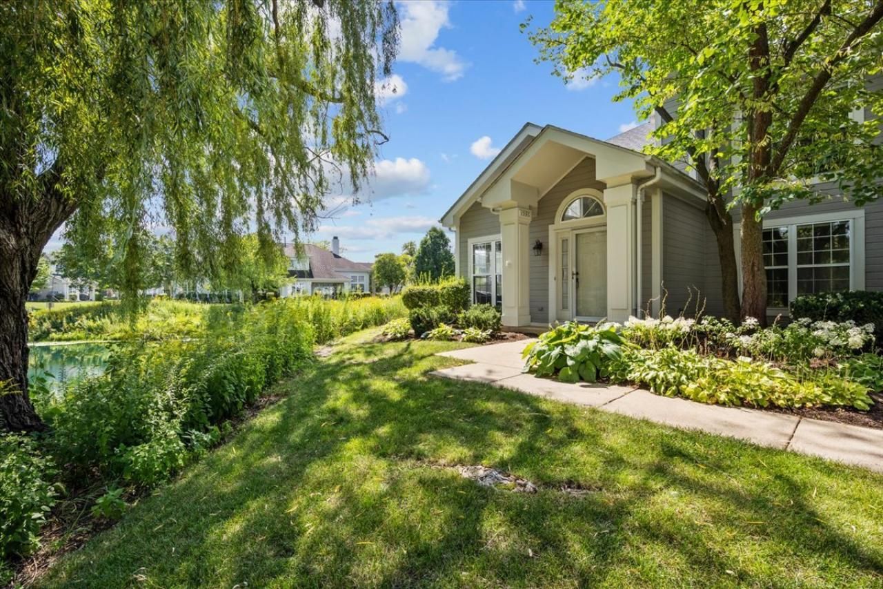 Who doesn't love a water view! Beautifully updated 2 bedroom, 2 full bath townhome tucked back by the pond! Natural light galore, stunning views from every window! Two-story living room and dining room, spacious loft. First floor bedroom with full bath, primary bedroom on second floor with full bath and large walk-in closet. Luxury vinyl wood floors on main floor, quartz countertops; kitchen appliances new in 2019. Huge walk-in pantry. Water heater, 2022; HVAC 2018; Washer and dryer, 2018; Humidifier, 2019; Garage door opener, 2021. Attached one-car garage. Cozy patio overlooks pond. Close to Randall Rd shopping & Batavia High School. You'll feel right at home here!