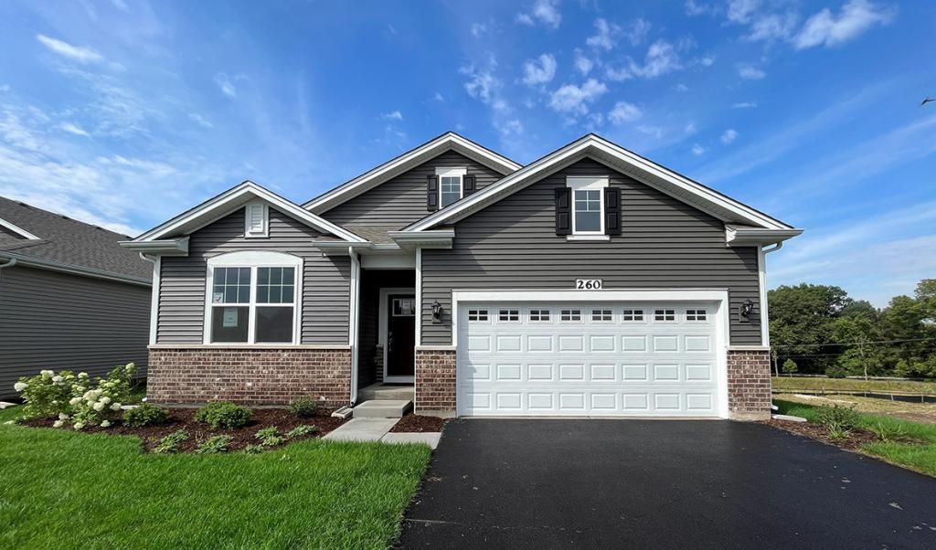 This popular Dover ranch has everything you have been wanting and more, available for August delivery. Take advantage of one of the last remaining homes with a walk out basement with rough in plumbing. As an added bonus you are backing to no one. Walking into this home you will be greeted with an open and floor plan boasting 9' ft ceilings, 3 bedrooms, 2 full bathrooms plus a flex room! The Dover offers abundant room to suit all your space needs and wants. The open kitchen includes designer white cabinetry, a walk-in pantry, white quartz countertops with island seating, undermount sink, and stainless-steel appliances. The dining area is open to your main living room and offers space for a large dining table. The main bedroom has an extra-large walk-in closet, a full bathroom with comfort height vanities, a walk-in shower with seat, and a separate water closet. The first-floor laundry room is centrally placed for convenience. Enjoy sunsets off your back deck overlooking a mature tree line. This new ranch home includes a professionally landscaped yard as well. This community is selling fast! Lincoln Valley is a Clubhouse community featuring a health club, gathering lounge, indoor/outdoor fireplaces, pool, Bocce Ball courts, Pickle Ballcourt, private dog park, and walking trails and is steps away from the Red Oak Nature Center and the Fox River Trail! All Chicago homes include our America's Smart Home Technology which allows you to monitor and control your home from the comfort of your sofa or from 500 miles away and connects to your home with your smartphone, tablet or computer. Home life can be hands-free. It's never been easier to settle into new routine. Set the scene with your voice, from your phone, through the Qolsys panel which you can schedule it and forget it. Your home will always await you with your personalized settings. Our priority is to make sure you have the right smart home system to grow with you. Our homes speak to Bluetooth, Wi-Fi, Z-Wave and cellular devices so you can sync with almost any smart device. Builder Warranty 1-2-10. Exterior/interior photos of similar home, actual home as built may vary.